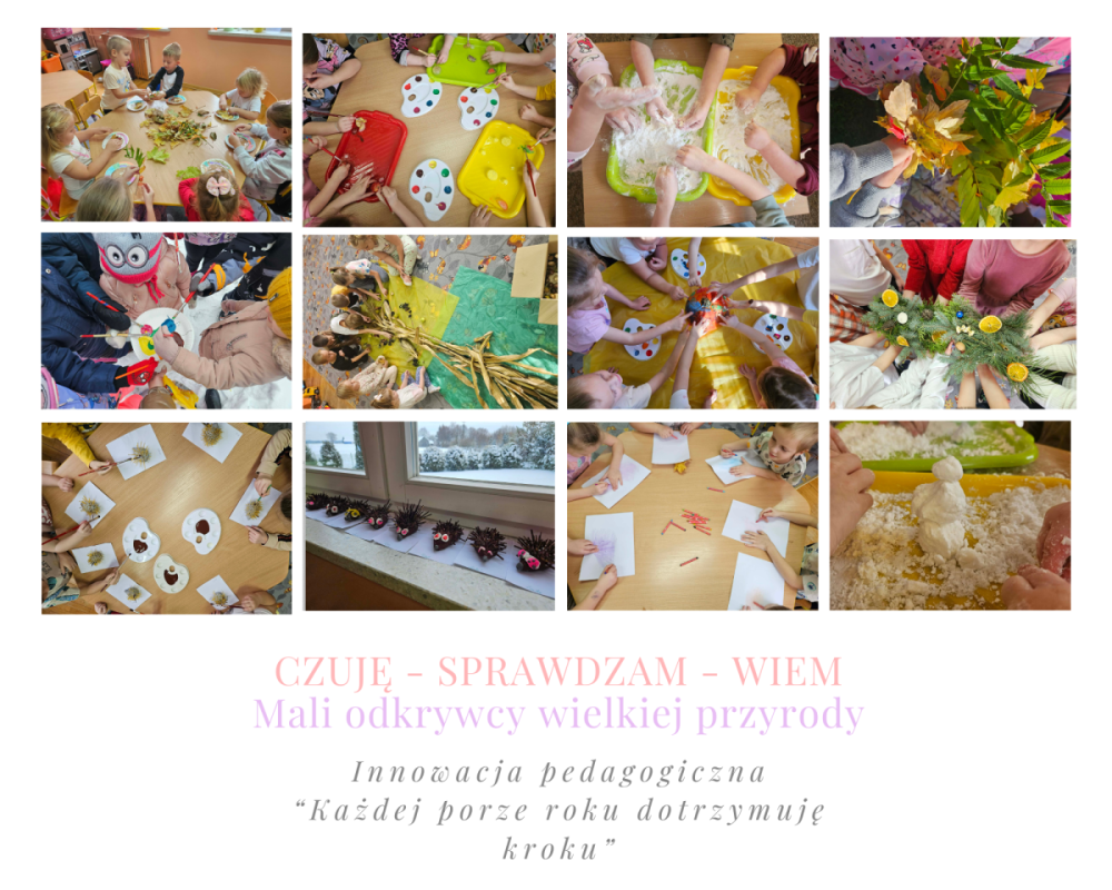 W naszym przedszkolu każdy dzień przynosi nowe doświadczenia i radosne odkrycia. Realizując innowację pedagogiczną „Każdej porze roku dotrzymuję kroku”, uczymy się poprzez działanie, obserwację i zabawę, dostosowując aktywności do zmieniających się sezonów. Takie działania nie tylko rozwijają sprawność manualną i uczą współpracy, ale także pokazują, że każda pora roku może być inspiracją do twórczej nauki.